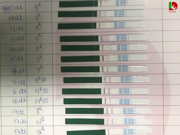 - Về phía vợ: canh nháp bằng que thử rụng trứng Lucky để đảm bảo độ chính xác, giúp đánh giá chu kỳ rụng trứng