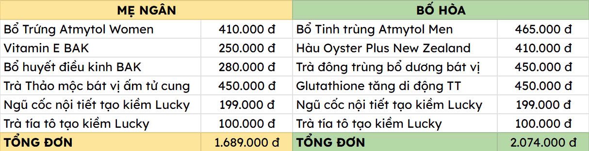 Lộ trình chi tiết & chi phí bồi bổ của 2 vợ chồng