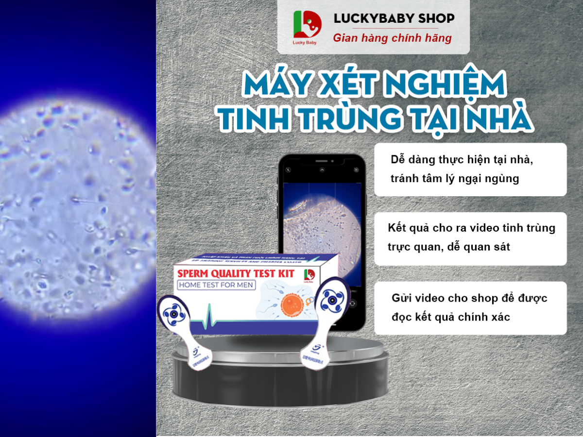 - Về phía chồng: Tiến hành kiểm tra chất lượng tinh trùng tại nhà bằng máy xét nghiệm tinh trùng Sperm Quality test kit (SQT).